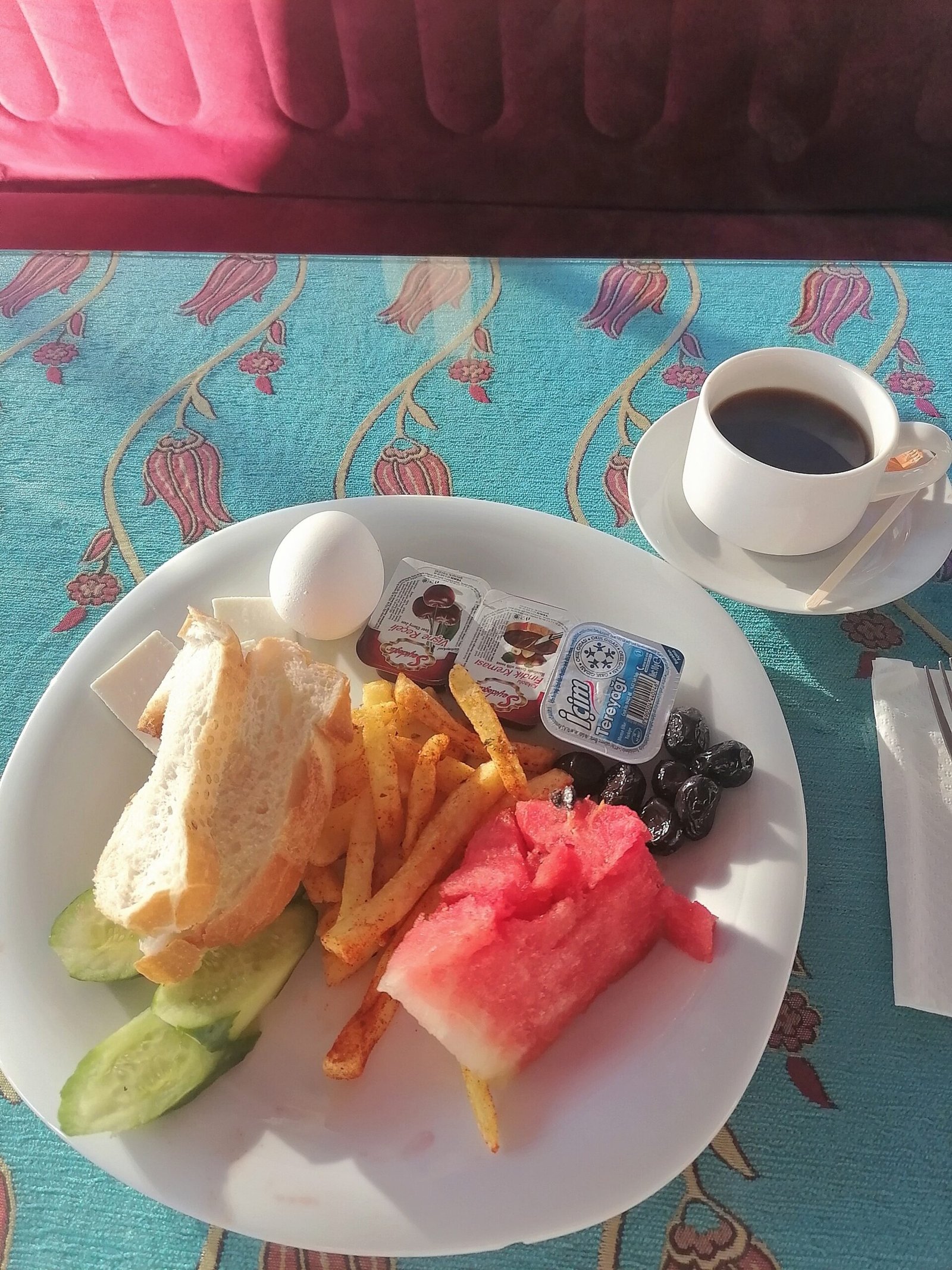 The staff in the café didn’t speak much English, but they still greeted me with a cheerful “good morning” and communicated with friendly hand gestures. As for the food, it was a typical Turkish breakfast—potatoes, fruits, boiled eggs, and bread. It wasn’t heavy like breakfasts back in Malaysia, but it was filling enough to start the day and gave me the energy I needed for wandering around Istanbul.