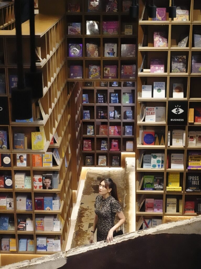 The maze is filled with visually interesting corners and angles, making it a favourite spot for photos. It’s no surprise that many visitors come not just for the books, but also to capture the experience on camera.